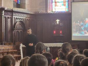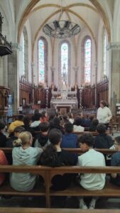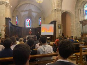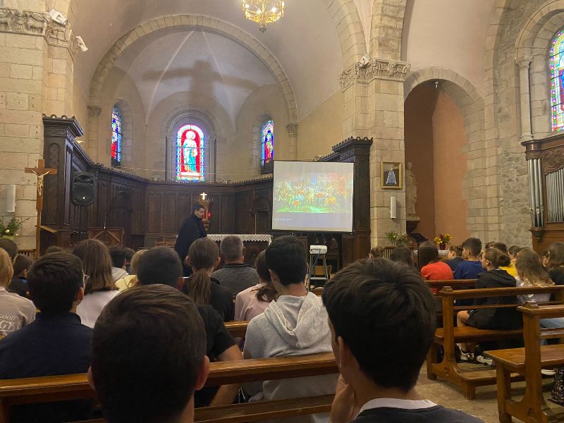 Tout d’abord, on leurs a proposé un court temps de prière à l’église puis un spectacle d’environ 1 heure sur la vie de St Jean-François Régis. Ensuite on a pu admiré les différents tableaux d’Abel Grimmer exposés dans la Chapelle Notre Dame. Enfin une découverte du jardin des sens pour les élèves de 6/5ème et une visite de l’entreprise Linamar pour les 4/3ème.