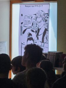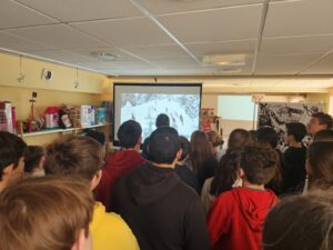 Ce jeudi 7 novembre, les élèves de 4e ont assisté à un spectacle déambulatoire à la médiathèque de Tence : la bande dessinée « humains » qui aborde la migration était au cœur du spectacle. Un bord de scène a ensuite été proposé par les comédiens pour répondre aux questions des élèves.