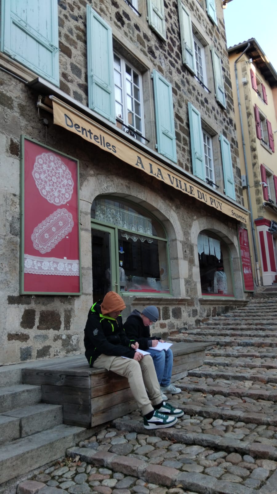 Ce mardi 14/01, parcours citoyen et culturel pour les 4e qui ont assisté à une audience au Tribunal et ont réalisé des descriptions naturalistes des lieux phares du Puy en Velay dont les devantures des dentelleries. A venir : une écriture collective qui se déroulera au cœur de cette belle ville de Haute-Loire et où le personnage principal sera convoqué au Tribunal (projet interdisciplinaire EMC-Français).