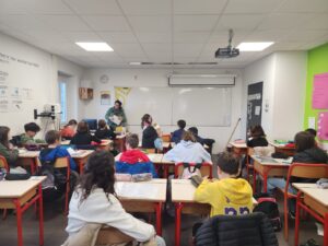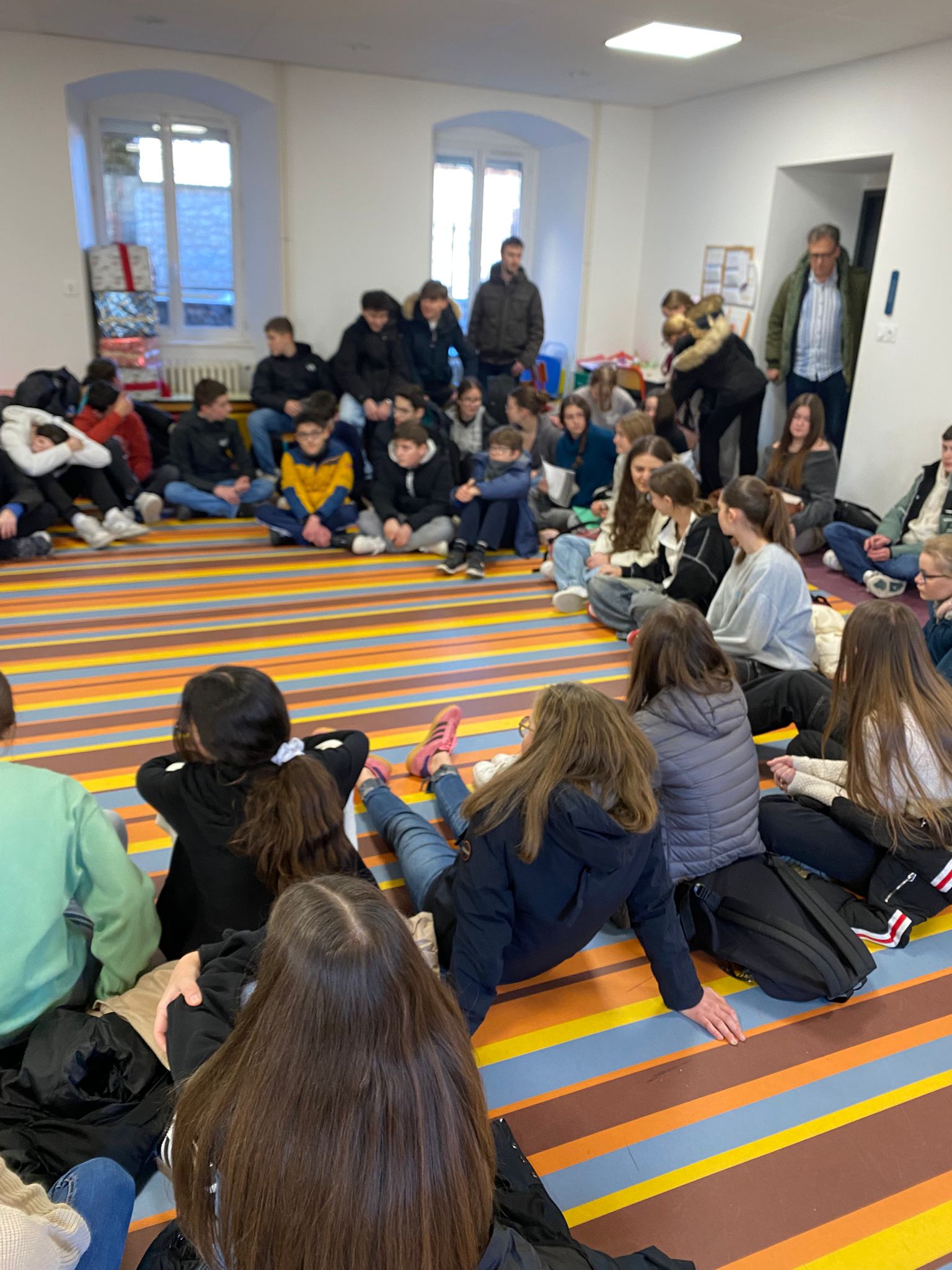 Présentation du spectacle gratuit « De père en piste » aux élèves du collège. Magaly Olivier a rencontré Alexandru Liger qui a écrit, monté et construit les décors. Le spectacle a lieu dimanche 26 janvier à 17h au gymnase de La Lionchère. Son spectacle « de Père En Piste » c’est un mélange de Théâtre, clown, mime, jonglage, saxophone, clarinette, du rire, de l’émotion et une surprise en fin de représentation ! 🤹🎷🎺