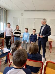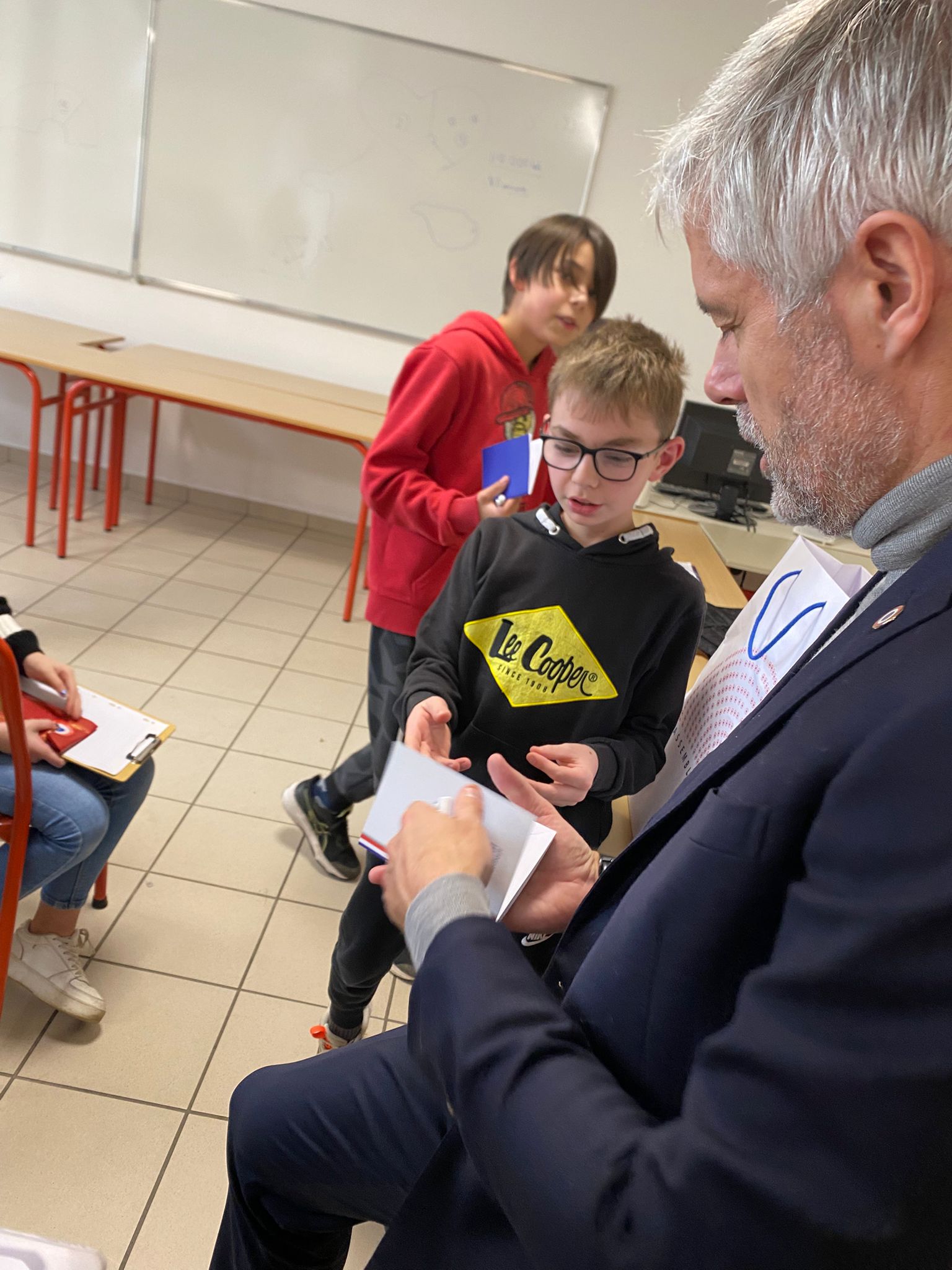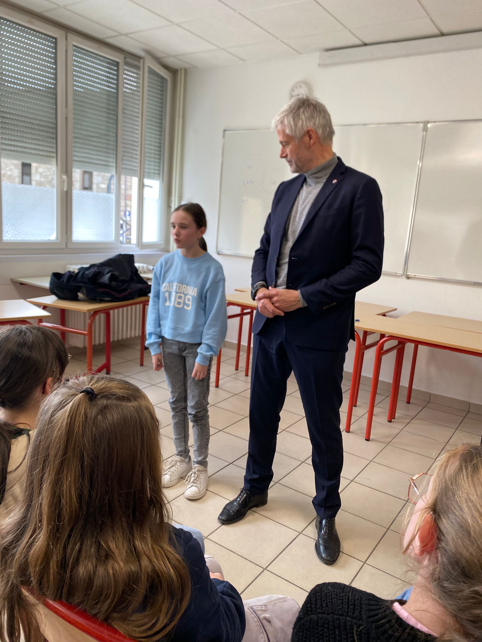 M. Wauquiez est venu rendre visite aux élèves de 6èmes ce vendredi 24 janvier afin d’évoquer avec eux le rôle d’un député, l’écriture d’une loi, la présentation de l’Assemblée Nationale et du Parlement.