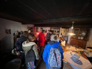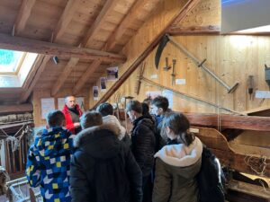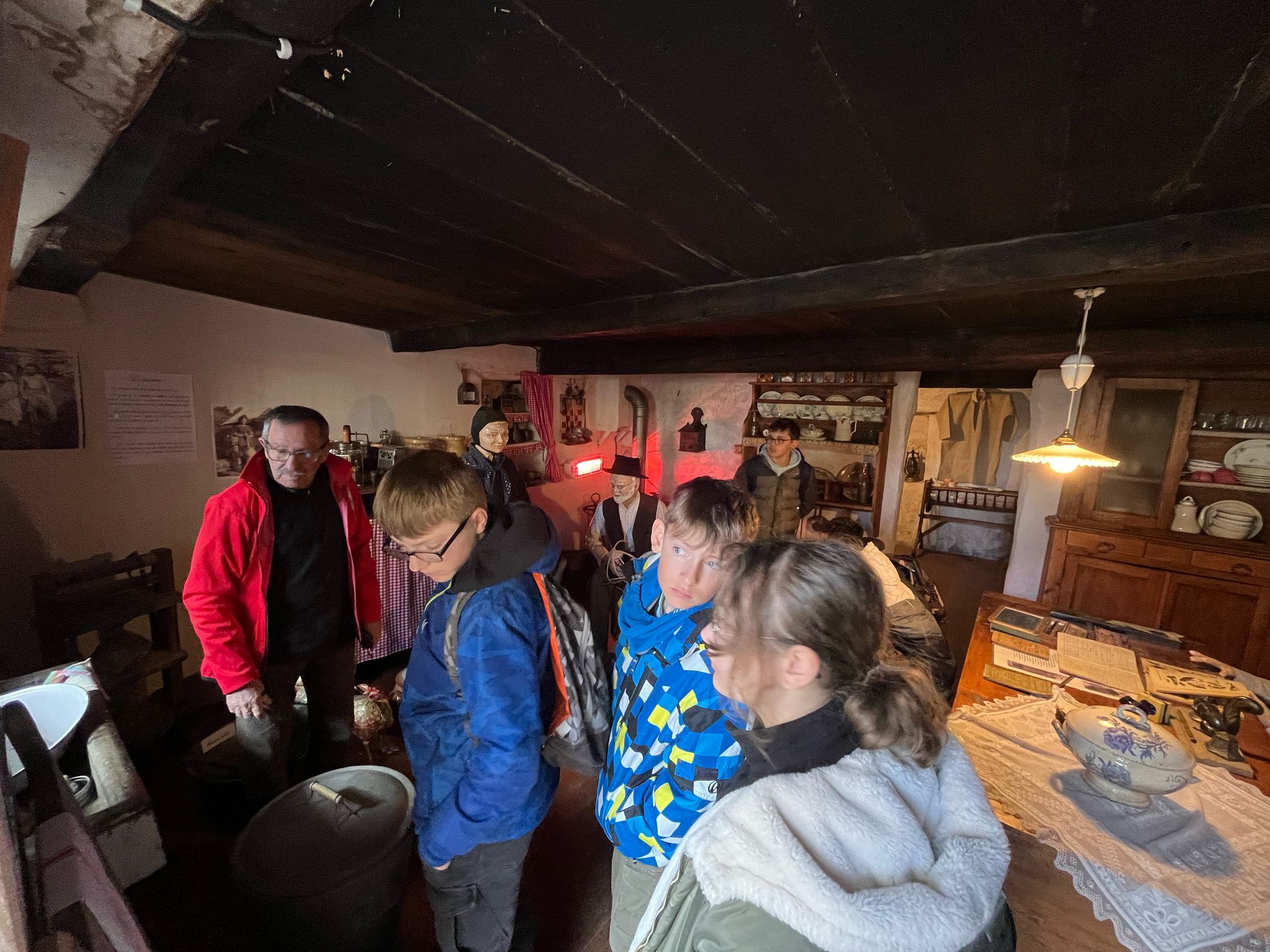 Ensuite visite de l’éco musée : Ce lieu retrace l’histoire de la commune à travers des expositions permanentes et temporaires, des reconstitutions de scènes de vie et des témoignages d’habitants locaux. Les bénévoles ont créé un musée interactif, où les élèves ont pu toucher et manipuler certains objets, s’immerger dans l’histoire locale et vivre des moments inoubliables ✅️
