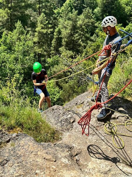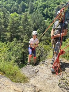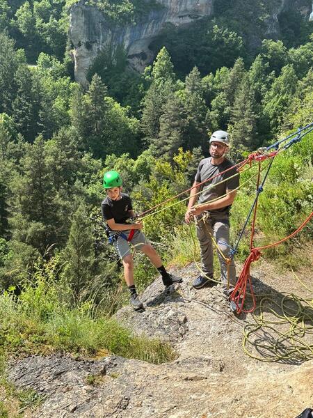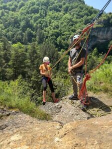 Cet après midi, activité descente en rappel, spéléologie ou trottinette électrique. Le chaud commence déjà à se faire ressentir.
