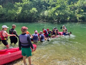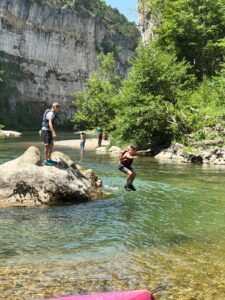 Ce jeudi, toujours sous le soleil, trois groupes d’élèves sont partis dans les gorges du Tarn pour faire du canoë. Pendant ce temps, les deux autres groupes ont pu profiter de la spéléo, de la trottinette électrique et la descente en rappel. Ce soir, après un très bon aligot au repas, c’est la traditionnelle boom de la dernière soirée. Demain retour au collège aux alentours de 17h.