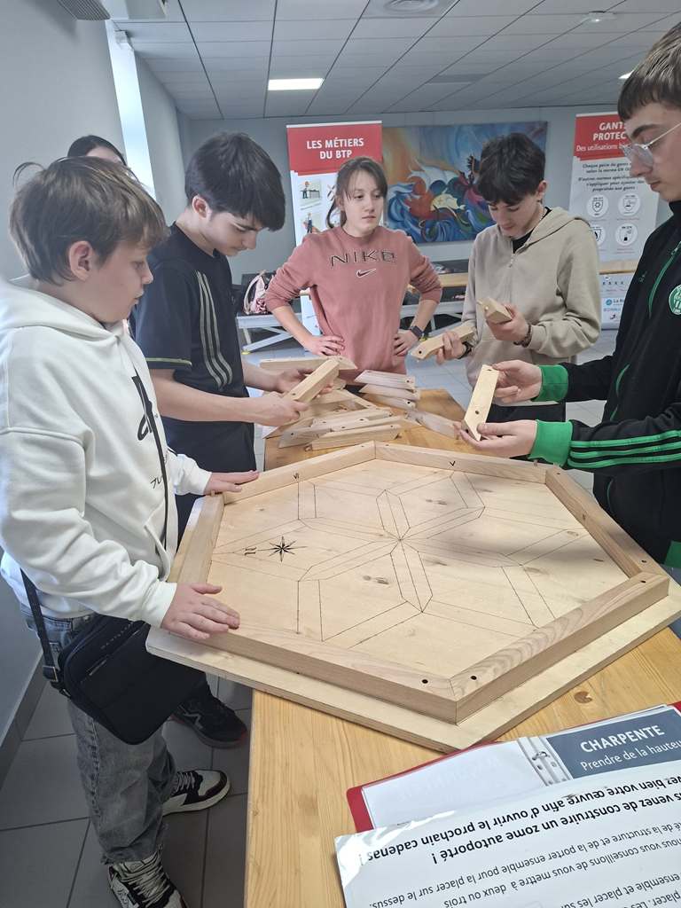 Ce mardi 24 février après-midi, la CAPEB a proposé un escape game pédagogique consacré aux métiers de l’industrie et de l’artisanat. Les 51 élèves de 4 ème ont pu découvrir de manière ludique et éducative, les métiers du bâtiment (charpente, maçonnerie, menuiserie, électricité, plomberie etc.).