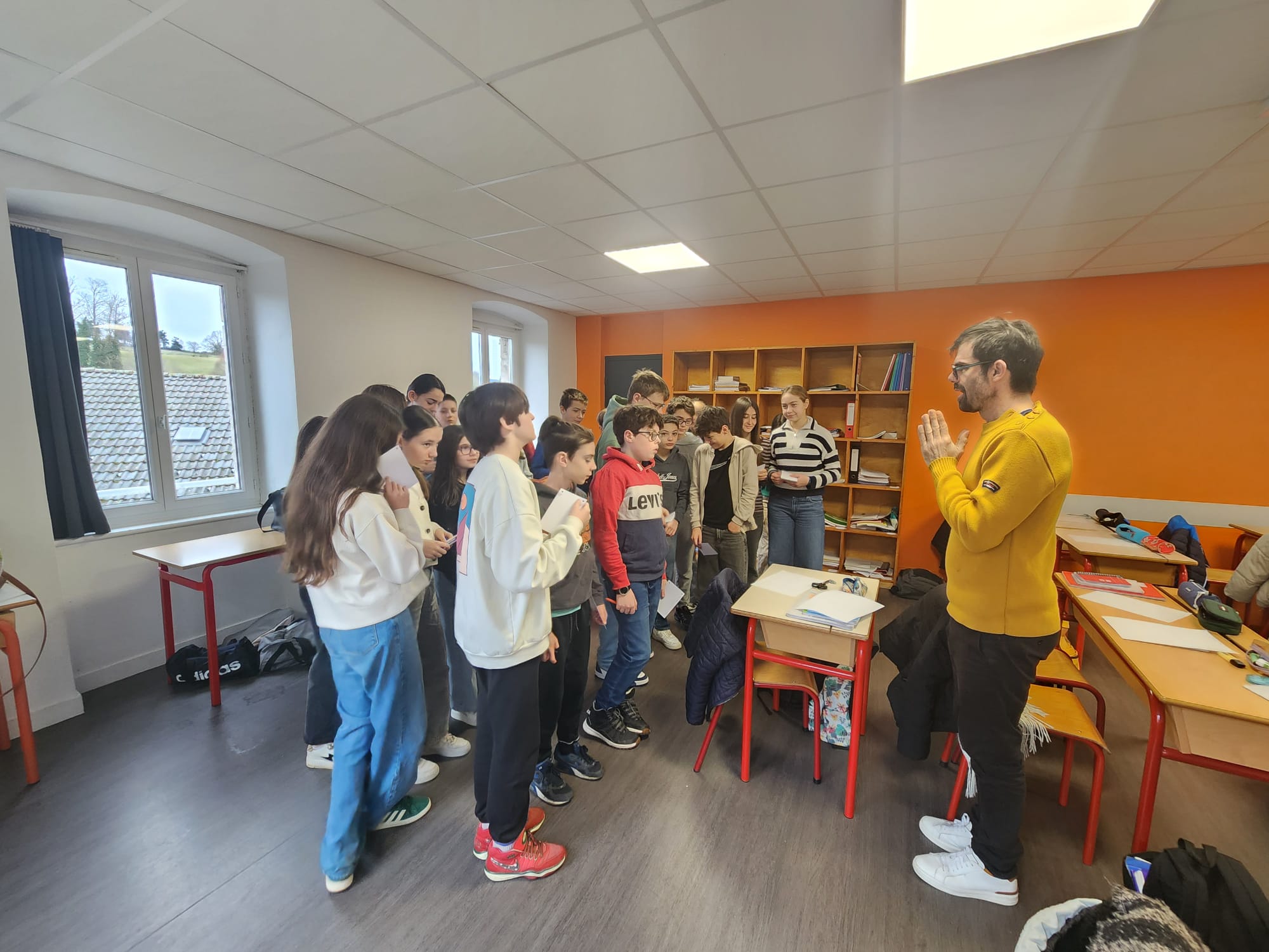 Dans le cadre d’un projet culturel proposé par la Communauté de communes, les élèves de 5e ont eu la chance de rencontrer l’écrivain et avocat Mathieu Simonet. Cette rencontre a été l’occasion de vivre un moment riche d’échanges et de réflexion autour d’un thème aussi poétique qu’essentiel : les nuages.