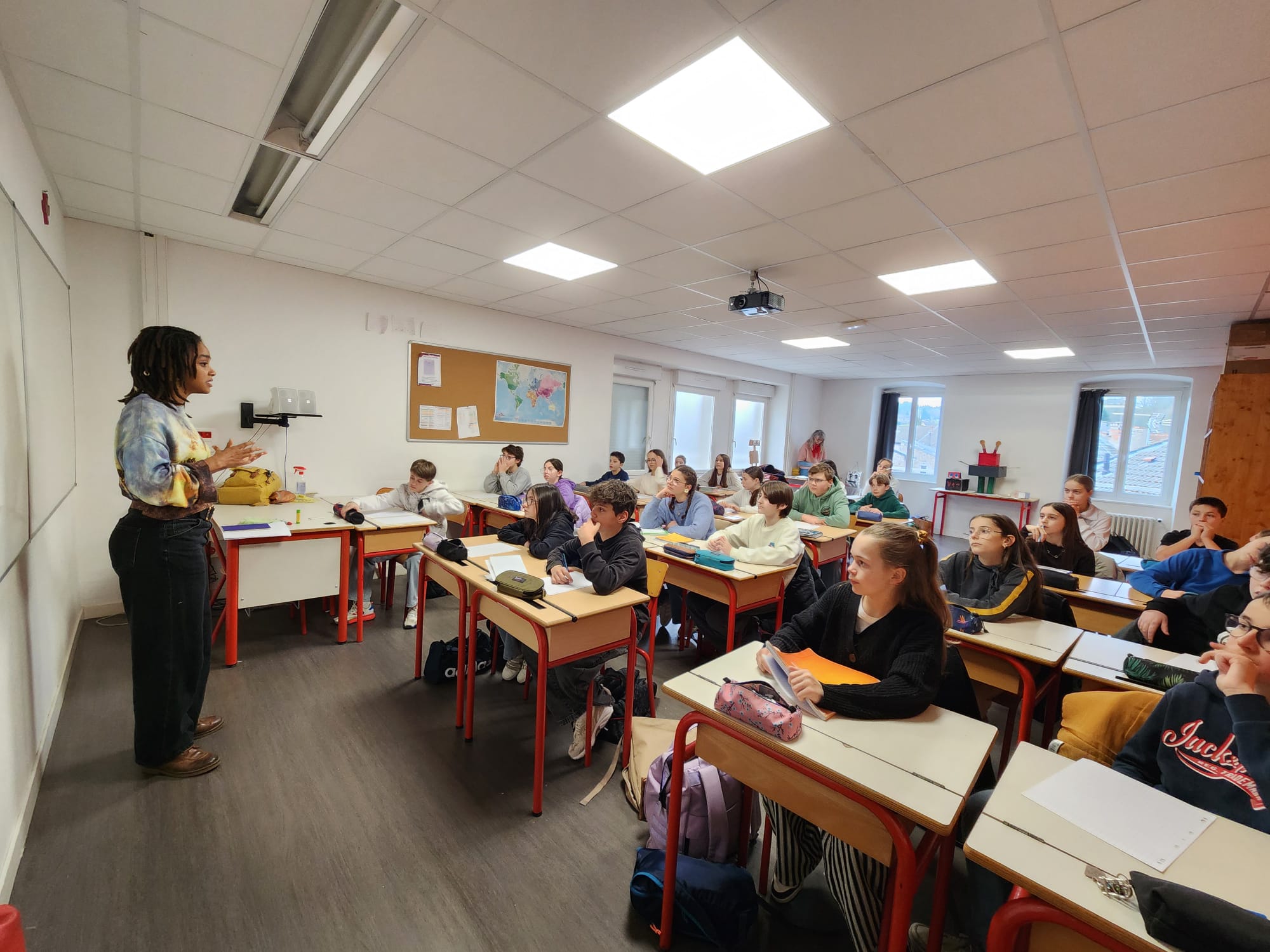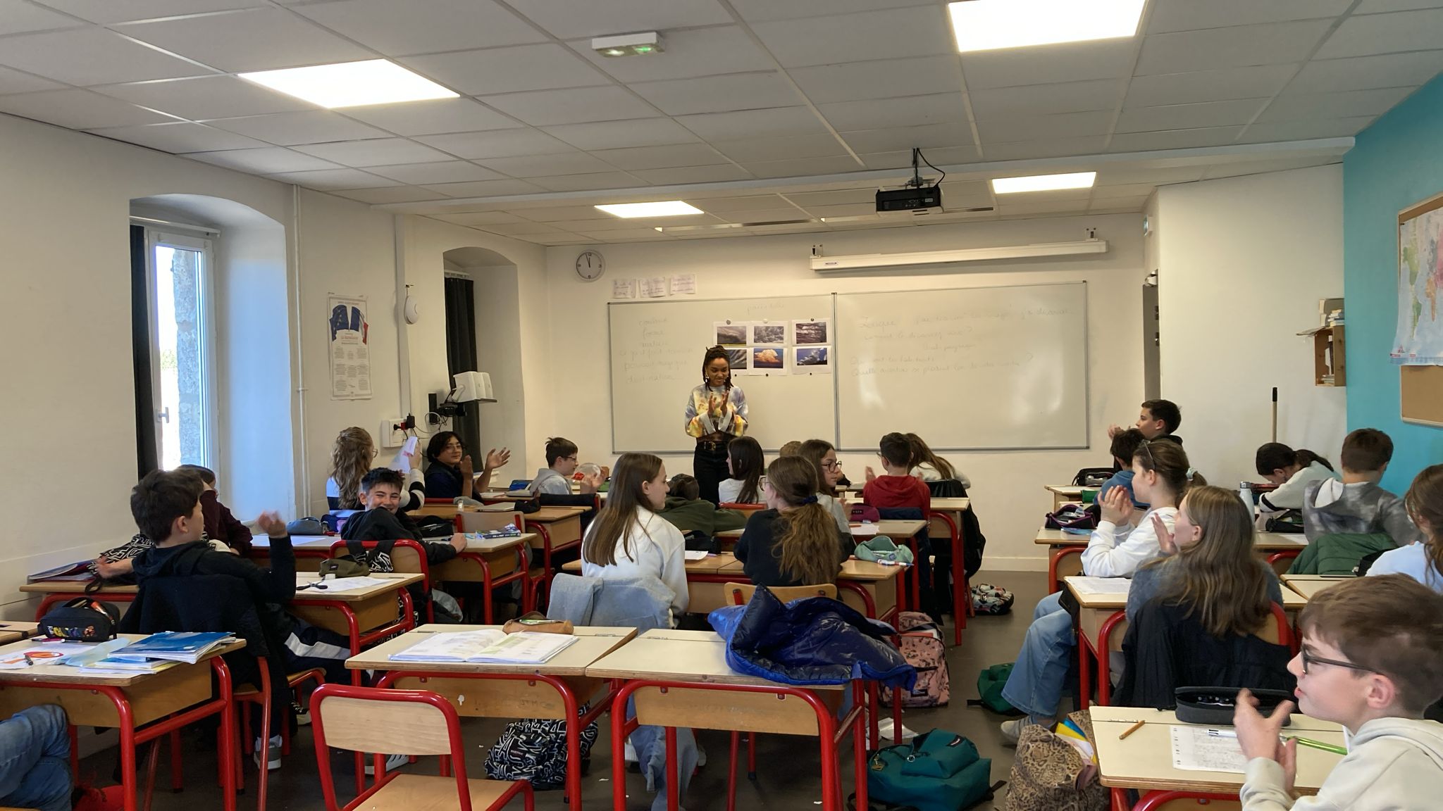 Les élèves de 5e ont accueilli, ce mardi 17 mars, l’autrice Haïla Hessou dans le cadre d’un projet artistique soutenu par la communauté de communes. Cette rencontre a donné lieu à un atelier d’écriture original, autour des expressions françaises liées aux nuages.