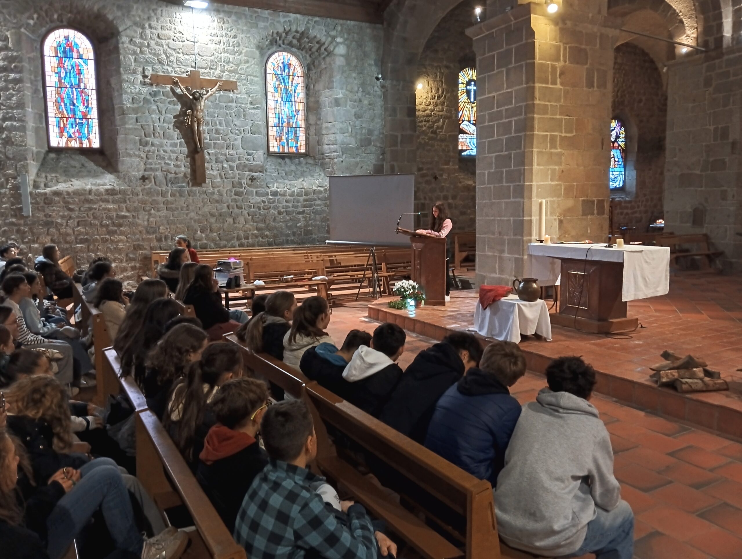 Cent dix élèves du collège se sont rendus en l’église de Tence, aujourd’hui, pour participer à une célébration de Pâques retraçant la passion et la résurrection du Christ, soit le cœur de la foi chrétienne. Ils sont prêts pour la semaine sainte.