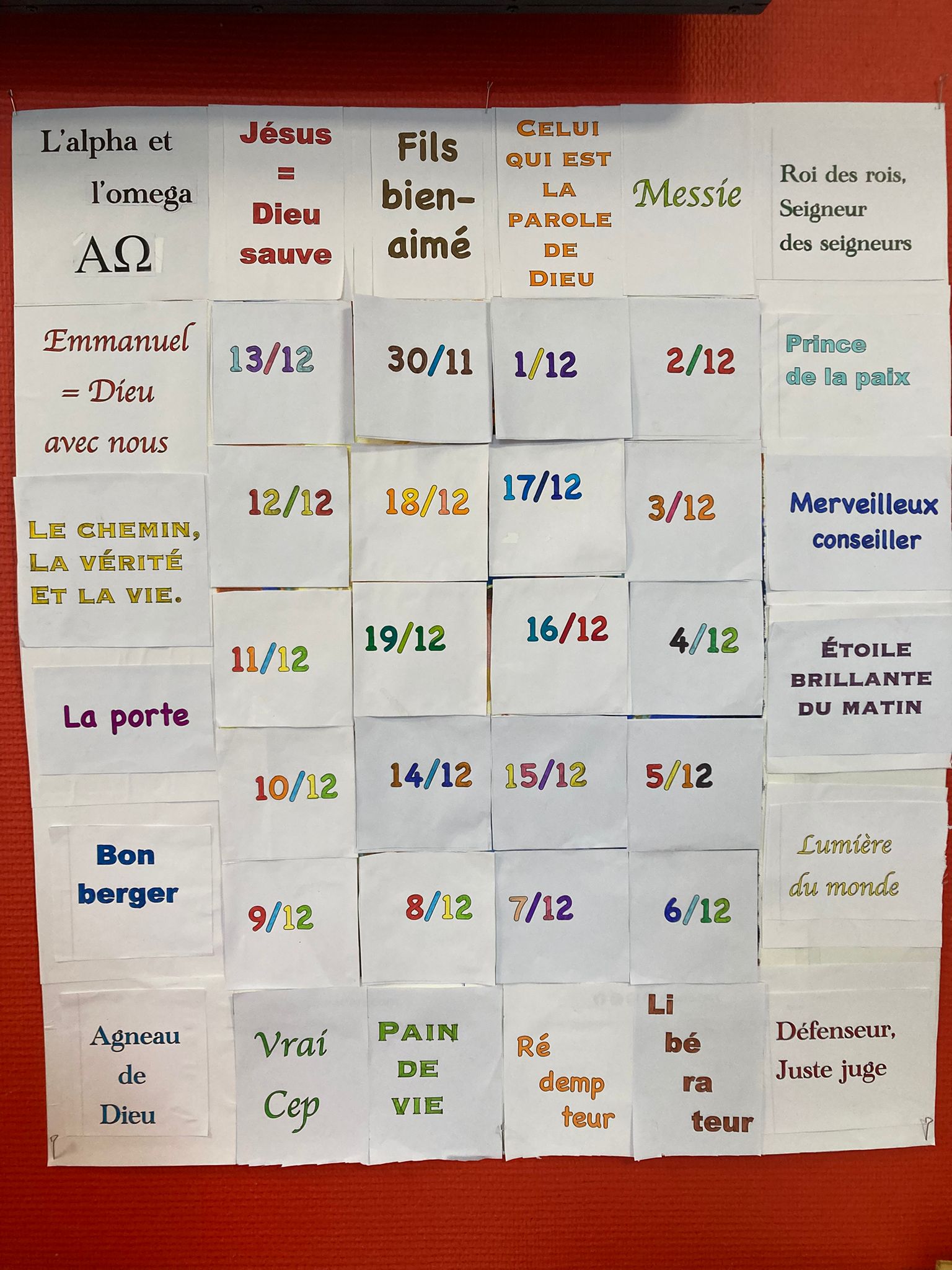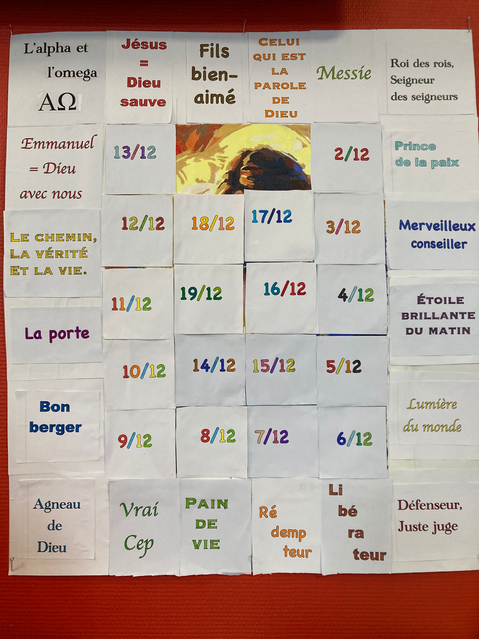 Les élèves du collège ont élaboré, en classe de Pastorale, un calendrier de l’Avent, inauguré ce matin.