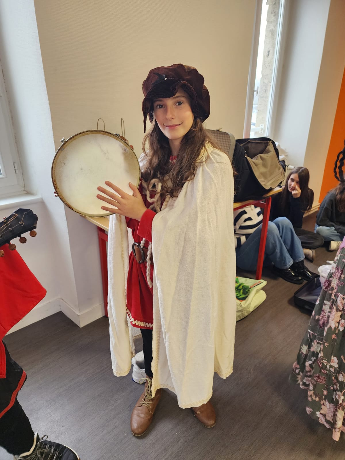 Les 5èmes jouent les troubadours, chevaliers, gente dame.